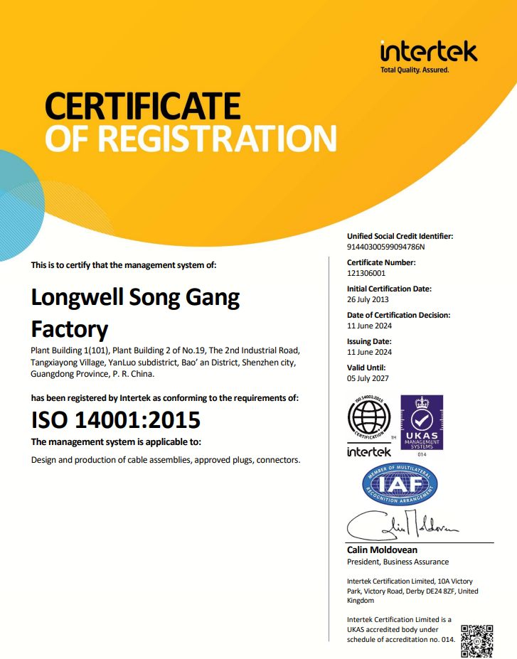 Integrated quality management systems have been implemented and are updated regularly. They apply to safety, health and environmental processes as well as supply chain systems. All of Longwell's factories are ISO 9001:2015 and ISO 14001:2015 certified.